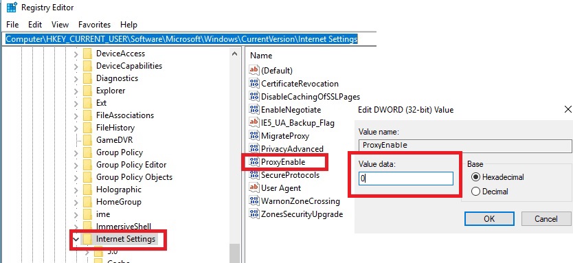 Ie stores its configuration settings in the hkey_current_user\software\microsoft\windows\currentversion\internet settings registry subkey. Click start, type gpedit.msc (without quotations) . The problem is that ie won't reset the proxy settings until it either. You can, instead, open the settings menu from the start menu, then click network & internet followed by proxy. you should see a slider . Settings in registry and internet options are ignored.